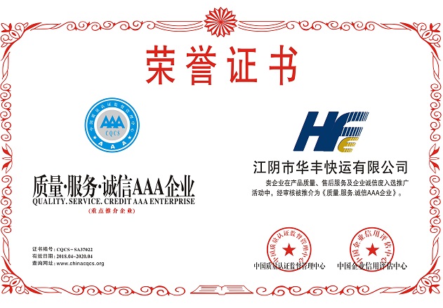 我司榮獲AAA誠信單位稱號,感謝廣大客戶的支持